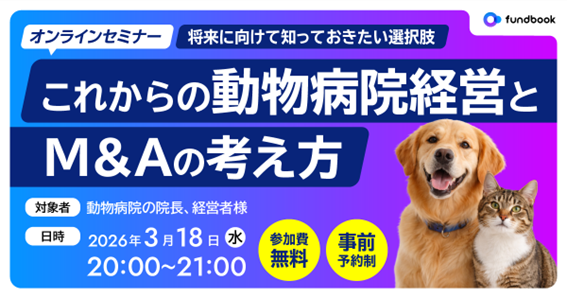 M&A仲介fundbook、無料オンラインセミナー 「これからの動物病院経営とM&Aの考え方」を 3月18日(水)に開催