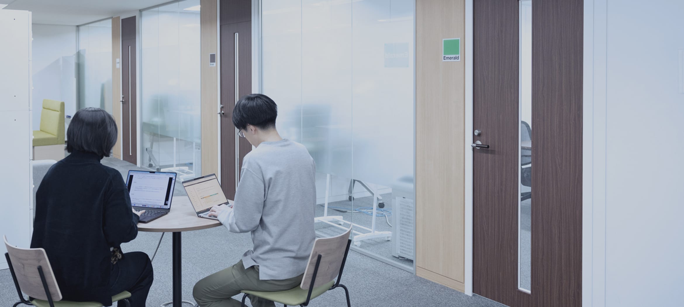 オフィスにはグループ各社のメンバーが集まり、セグメントや職種を越えて自然なコミュニケーションが生まれています。集中して作業できるオンラインミーティングブースのほか、開放的なスペースではチームが自由に意見を交わしながら業務を進められる環境を整えています。 "会うことで広がるシナジー"と"自分らしく働ける柔軟性"の両立を大切にしています。
